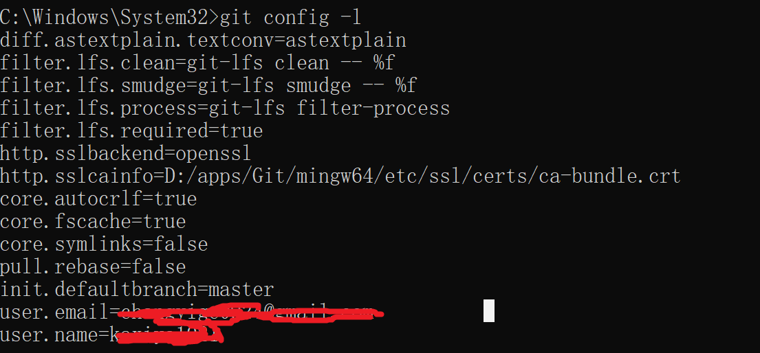 1 | git config -l |