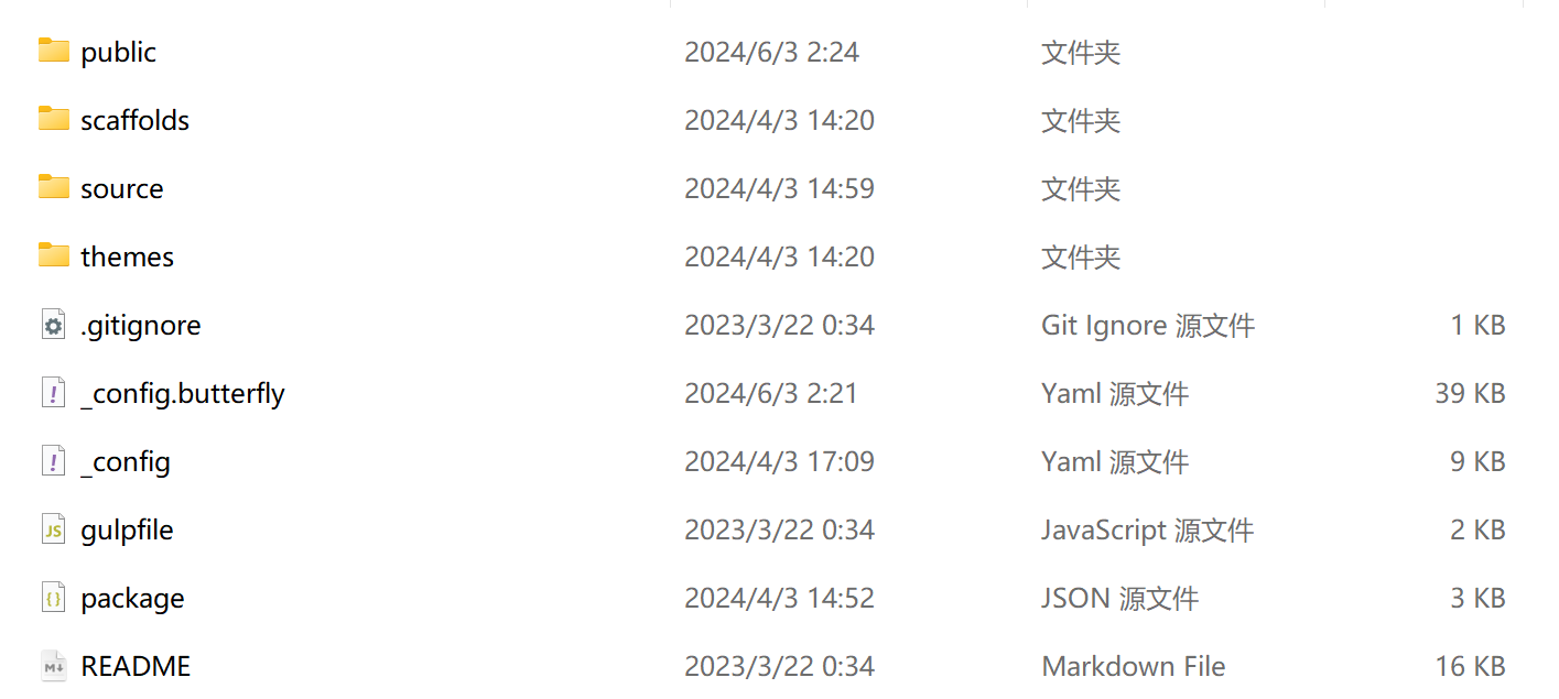 然后就是把之前的blog文档打包迁移到新电脑上,一些目录不需要可以删除掉,最终只保留了如图所示这些: